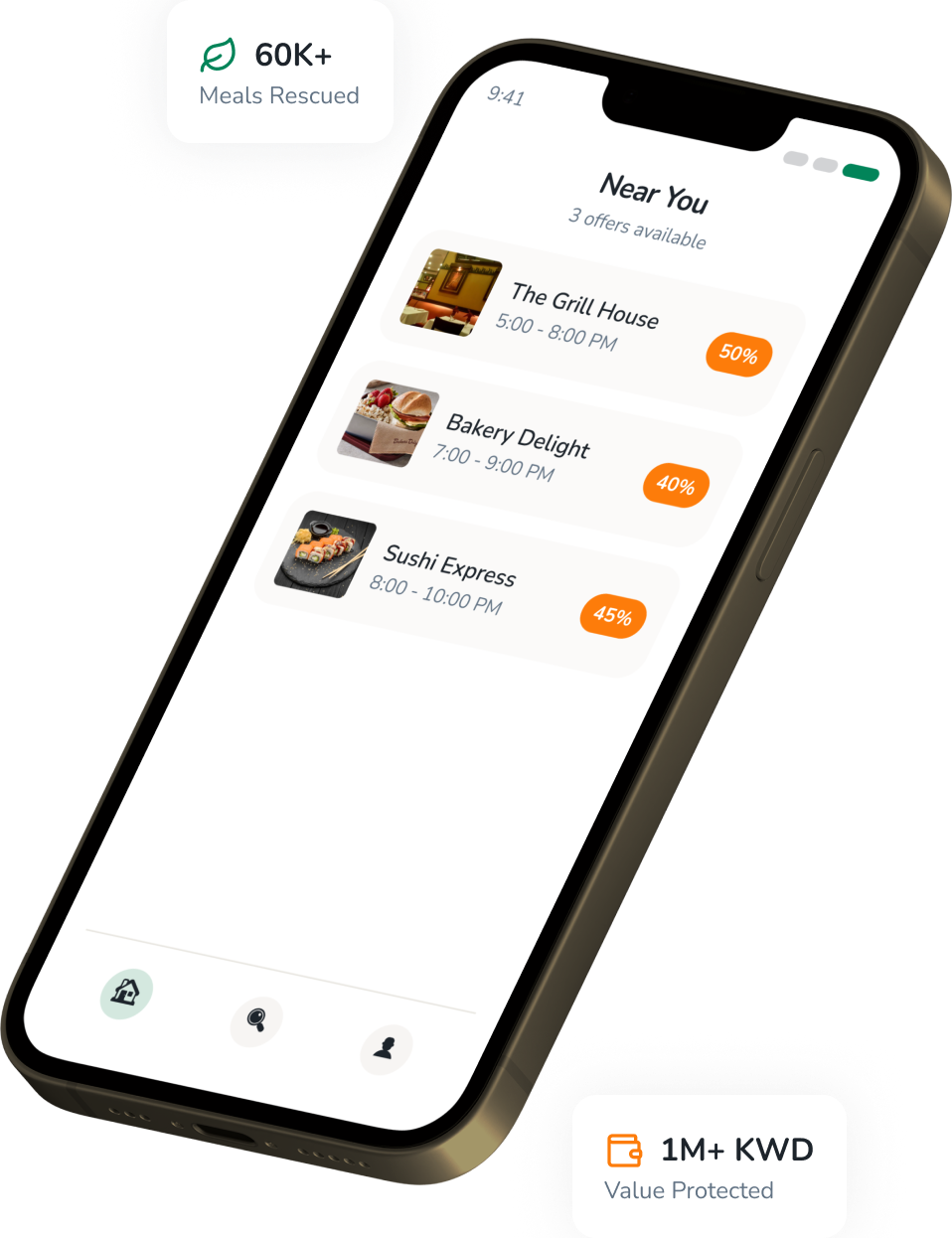 A simple platform built around one idea: respect the blessing of food, reduce waste, and make smart savings easy for everyone in Kuwait.